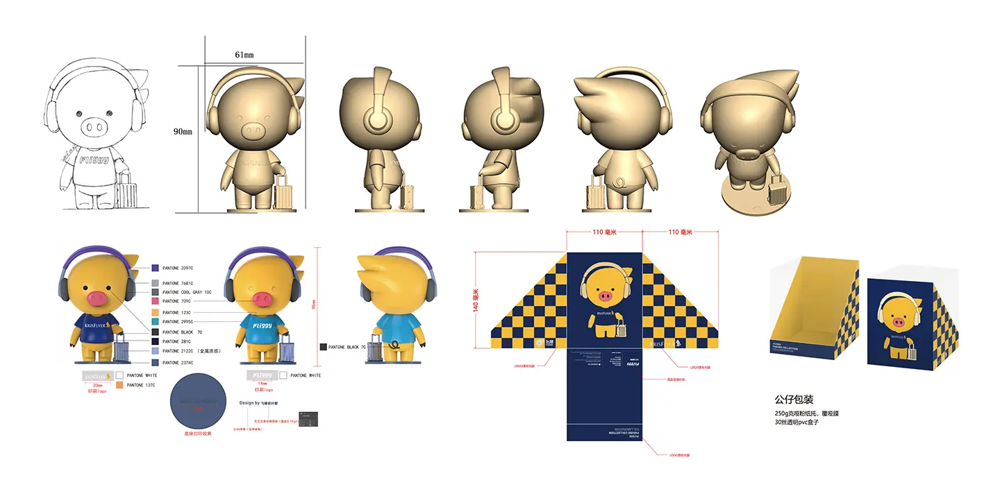 到这里,按照几个核心要素对形象的调整就宣告完成了,我们又对小飞猪进行了一些实体化的尝试来检验形象延展的效果。
