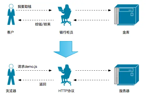 这是一条很准确的定义,但对于不了解Service Worker的同学来说可能并不形象,下面我们更形象的理解一下这个概念。我们以去银行取钱为例子,其过程大概如下图: