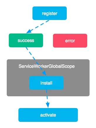 需要注意的是,图中灰色的部分是一个独立的特殊线程,并不是浏览器渲染页面执行js的线程,因此使用Service Worker的过程中无需担心会影响页面的渲染。