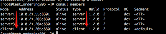 tips: 如果反过来,要将1个节点从集群中撤掉,可以在该节点上运行consul leave 即可。