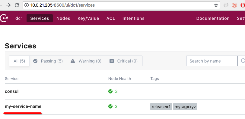 就能看到新注册的服务my-service-name,特别要提一下的是tags,eureka中有metadata-map可以提供元数据,consul中对应的特性为tags。