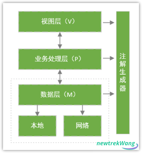 每个业务Module采用MVP分层模式开发,如果业务量小,也可以不采用,直接原始的MVC开发方式也可以。但我觉得如果BaseLibrary的基础数据请求工具支持的话,每个业务Module随便用MVC,MVP,MVVM都行,反正Module之间不影响,每个分工人员也可以保留自己的“偏爱”。