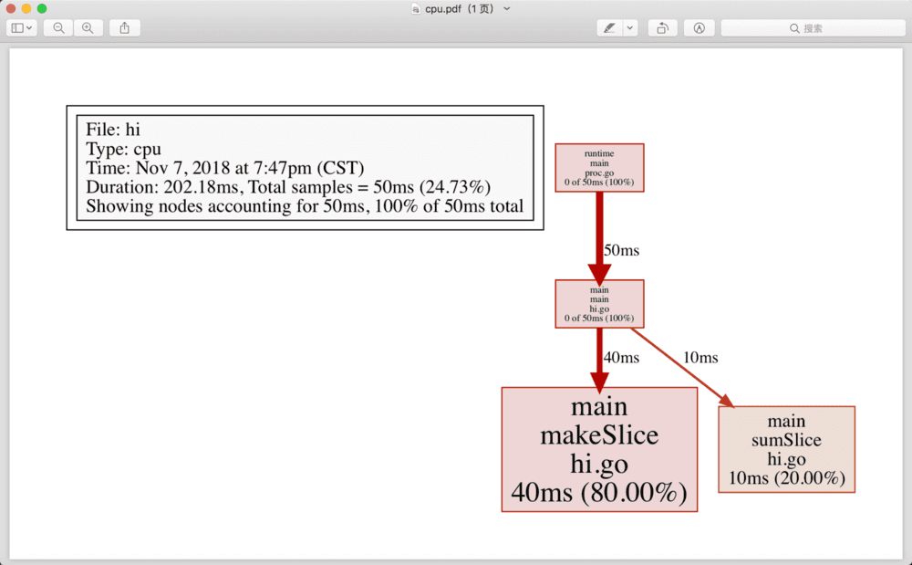 1go tool pprof -pdf ./hi /var/folders/5g/rz16gqtx3nsdfs7k8sb80jth0000gn/T/profile046201825/cpu.pprof > cpu.pdf