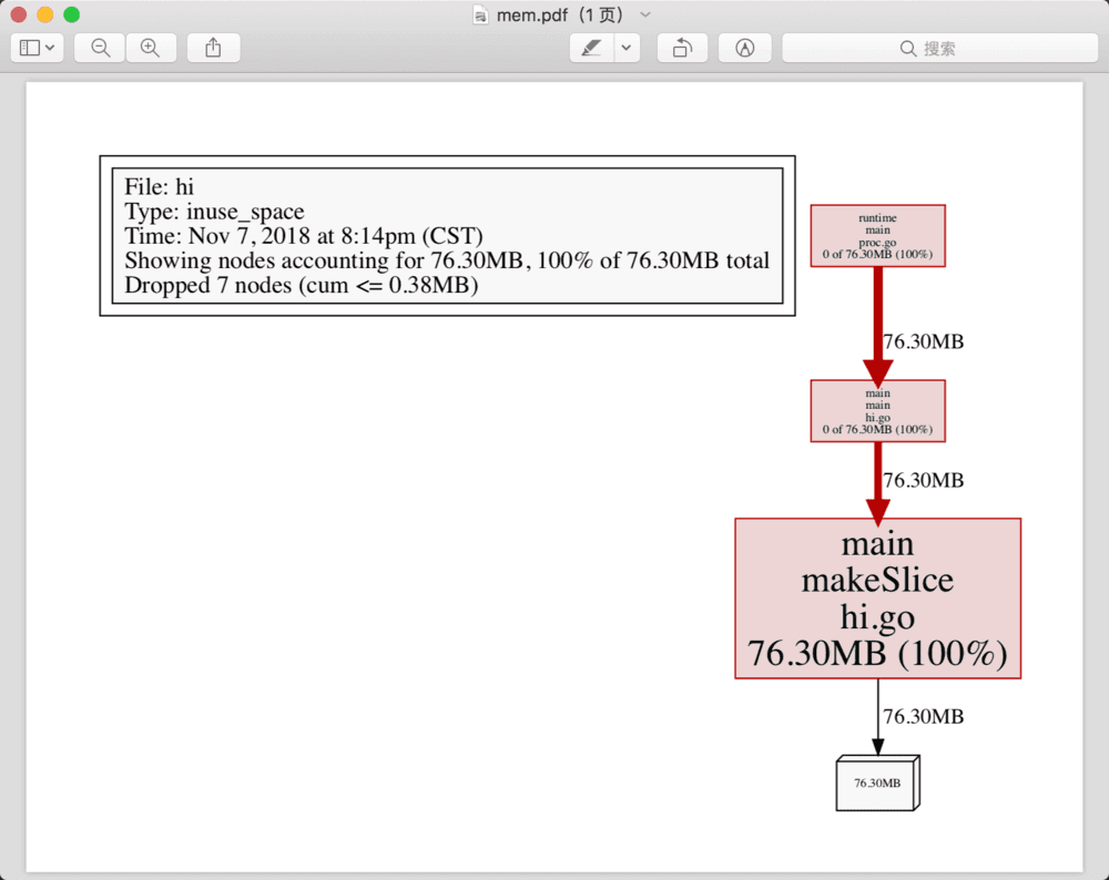 1go tool pprof -pdf ./hi /var/folders/5g/rz16gqtx3nsdfs7k8sb80jth0000gn/T/profile986580758/mem.pprof > mem.pdf