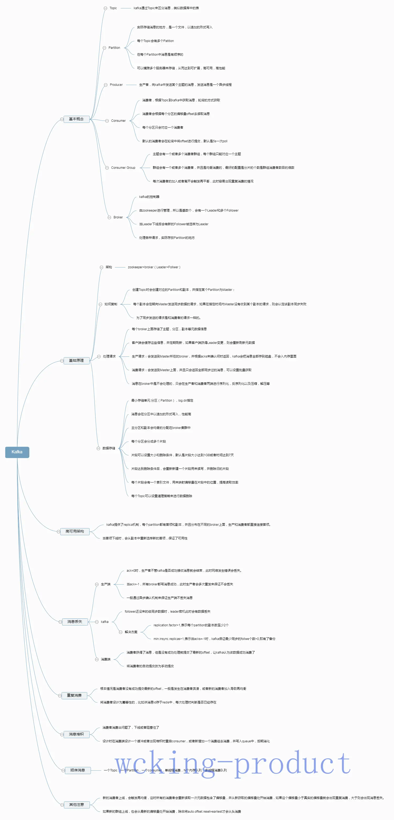 Kafka走查 努力的码农 2019-03-01 523 阅读1分钟 最近项目中使用到kafka进行数据同步的服务,原来只是简单的使用,但是这次发现需要保证数据的一致性(最终一致性),所以深入的研究了一下kafka的相关知识。 kafka的基本描述这里就不赘述了,不了解的同学可以去百度一下,我这次直接全部以脑图的方式展现给大家看看,没有过多文字描述。大家如果有不懂的可以直接在评论里面描述吧。 前方高能!!!!!