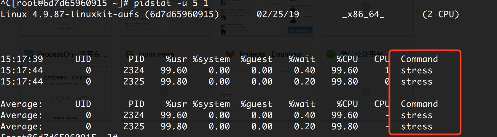 可以明显看出时stress命令导致的 cpu 负载过高。