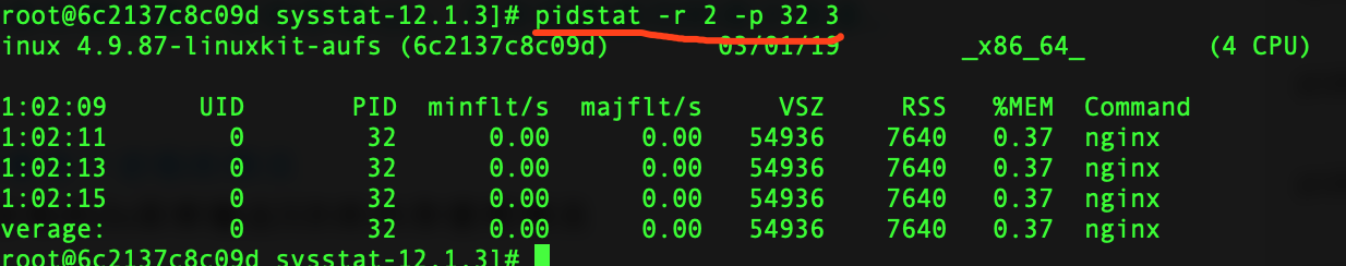 查看nginx master进程的2s采样输出3次的内存使用情况