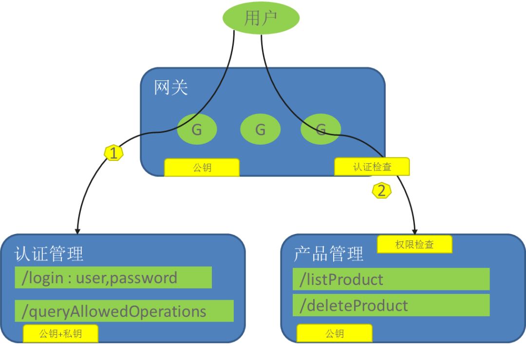 2用户调用产品管理接口。需要将Token信息从浏览器读取出来,通过Authorization头或者其他的HTTP头将信息传递下来。其他服务可以采用公钥对Token进行解密,确认用户身份,以及获取角色信息。对于身份认证的部分,可以在网关统一进行,也可以直接由业务执行。网关进行的好处是可以防止疏漏,但是会存在重复检查的成本。业务可以从Token里面解析出来角色信息,以判断访问者是否具备相关操作,比如listProduct或者deleteProduct的权限。