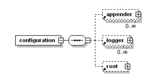 个或多个<appender>元素,有零个或多个<logger>元素,有最多一个<root>元素