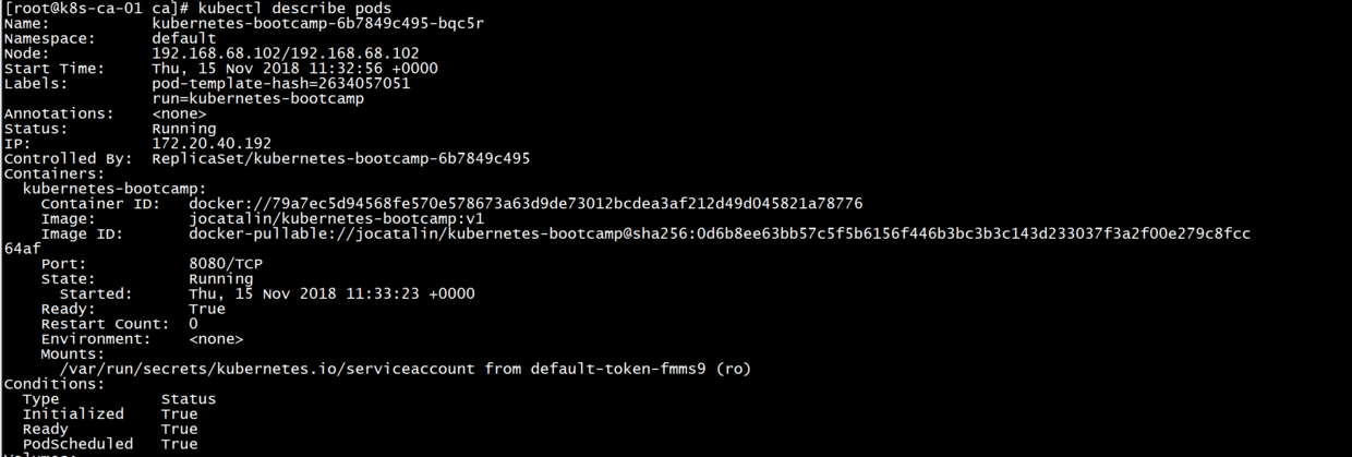 kubectl run kubernetes-bootcamp --image=jocatalin/kubernetes-bootcamp:v1 --port=8080