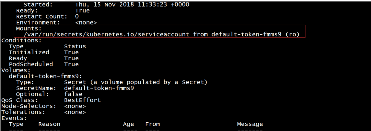 就是secrets 里面的值复制给pod,apiserver里面的开启了serviceaccount,会在default的命名空间下,创建一个默认的serviceaccount,在每个pod启动后,会把servicesecret,以文件的形式挂载在pod上。