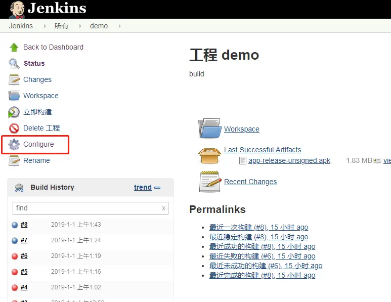 点击configure 配置刚刚创建的Job