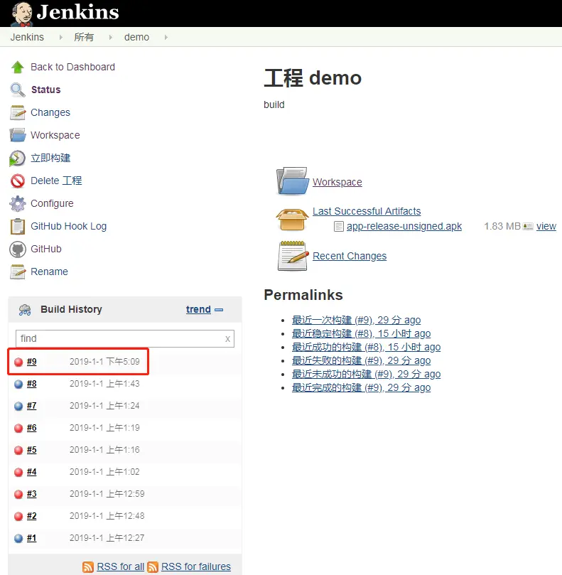 - 构建历史可以看到之前的构建,并且可以看到本次的构建信息