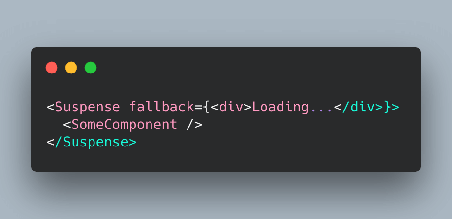 React.Suspense 组件允许我们将另一个组件包裹起来,并指定一个 fallback 组件,后者会在被包裹组件加载时展现出来: