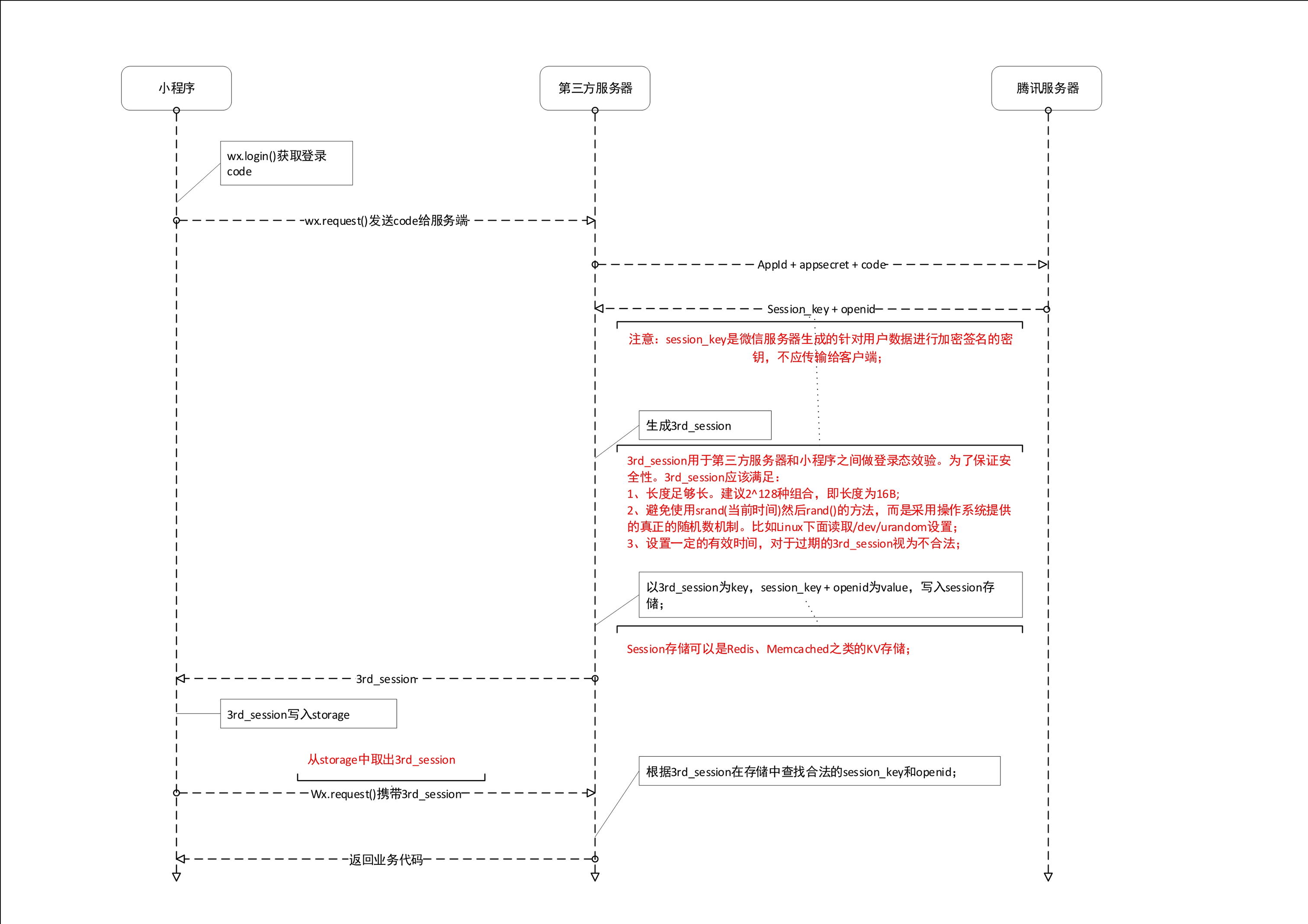 3、在第三方服务器生成3rd_session,将3rd_session作为key,session_key和openid为value写入session储存,用于小程序端和第三方服务器之间的登录态效验,发送给小程序端;