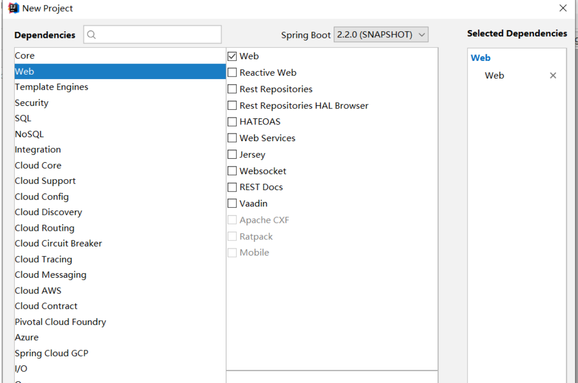- 选择需要引入的包,这里暂时先引入web需要的包。后续根据自己实际情况在pom.xml增加。