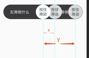 这部分可能算是自定义这个View最复杂的部分了,其实只要想明白了,也不复杂。这里就拿按钮从中间往右滑来讲解,按钮从中间往左边滑计算方法和往右滑的差不多,先看图