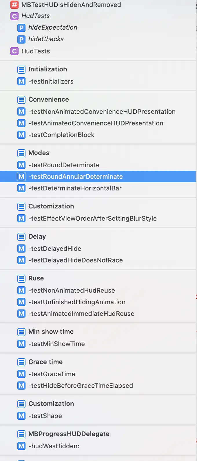 从上述的hud的实现,我们可以看出作者将初始化、布局、约束、弹出和隐藏及相关属性的设置都很细致的分别拆分开来作为单独的方法。这样就很方便将每一个方法当做use case来进行单元测试。