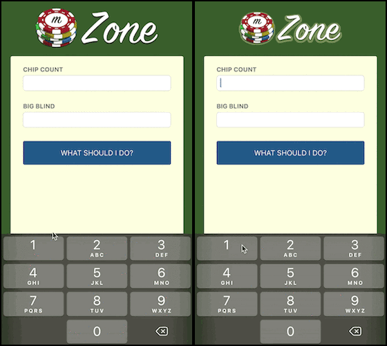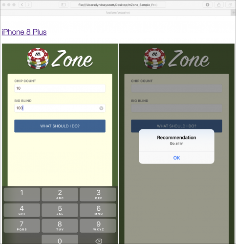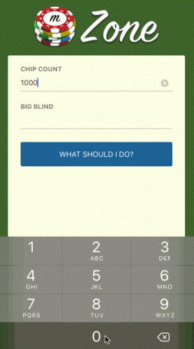 首先,使用本教程的示例应用程序mZone Poker是No Limit Texas Hold'Em锦标赛的扑克计算器。 它会根据您的筹码数量和当前的大盲注级别显示建议的操作。