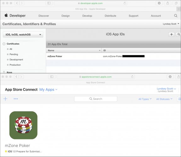 替换[[YOUR UNIQUE BUNDLE IDENTIFIER]] mZone Poker Pro的当前bundle ID。 然后创建一个暂定的唯一应用名称,例如: