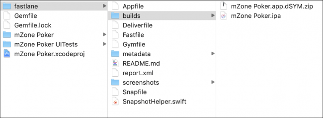 回到mZone文件夹,你会看到一些新东西:Gemfile,它包含fastlane gem作为项目依赖项和fastlane文件夹,包含:
