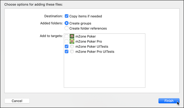 Copy items if needed.Create groups.mZone Poker UITests.mZone Poker Pro UITests.