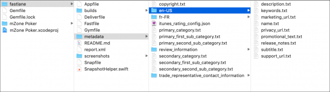 将mZone Poker Pro / en-US / name.txt和mZone Poker Pro / fr-FR / name.txt的内容更改为新应用程序的名称。 为简单起见,暂时保留所有其他元数据。