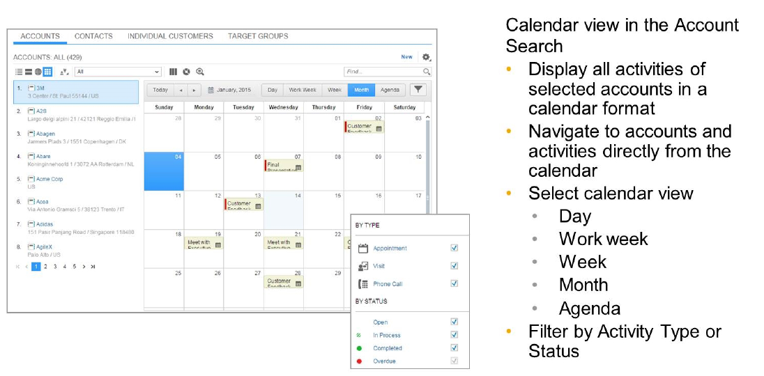 C4C的Account List里能够直接在OWL(Object Work List)里看到每个账户的日程安排。