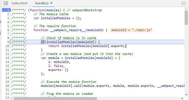在bundle.js里此处进行运行时加载:return webpack_require(webpack_require.s = "./main.js");