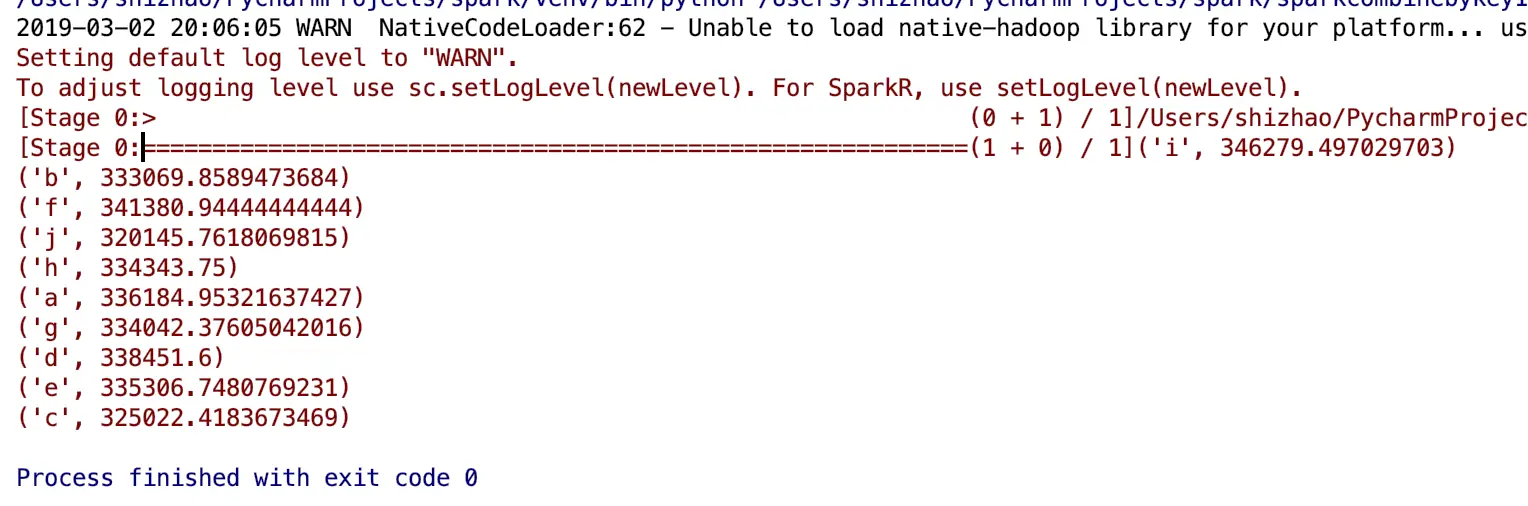 我们运行程序,发现程序没有任何输出。这是由于spark的懒加载特点,spark只用在对数据执行具体操作时,如输出、保存等才会执行计算。这看起来有点不合理,但实际上这样做在很多场景下能大幅度提升效率,但如果没有处理好,可能会导致spark每次执行操作都会从头开始计算该过程。因此当一个操作结果需要被频繁或者多次调用的时候,我们应该将结果存下来。