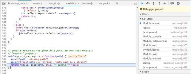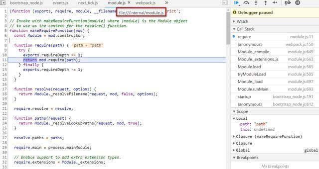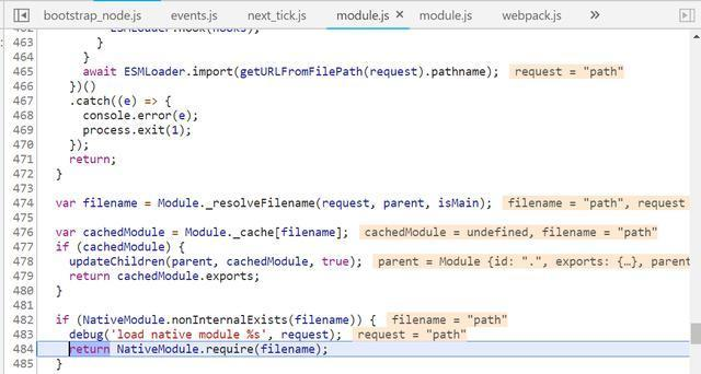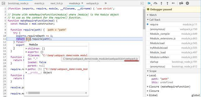 从调试器看出,就是当前命令行node启动的webpack.js: