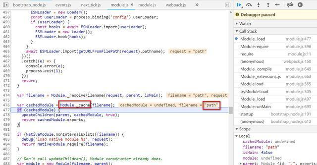 首先会去Module._cache里检查path模块是否已经加载了。在我这个例子里,path是第一次加载,所以Module._cache是空的。