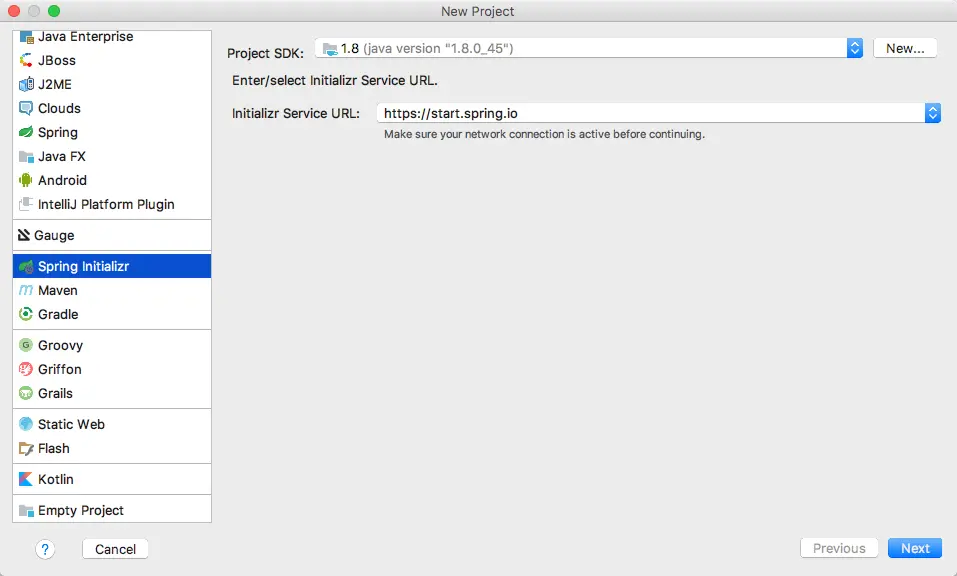 图 1-2 创建工程之选择使用 Spring Initializr