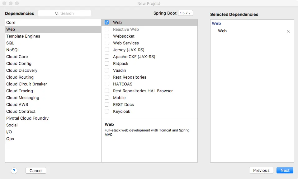 图 1-4 创建工程之选择 Web 依赖