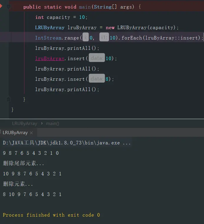 注意:因为有大量频繁的访问导致数据迁移频繁,因此数组并不适合做这种事情,可以考虑加一个HaspMap做缓存,避免数据的频繁迁移。
