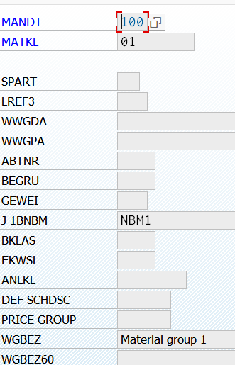 其中字段MATL_GROUP: 物料组,类型为MATKL,value table T023,