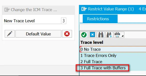 下面是用事务码SMICM找出问题根源。Goto->Trace Level->Set设置跟踪级别: