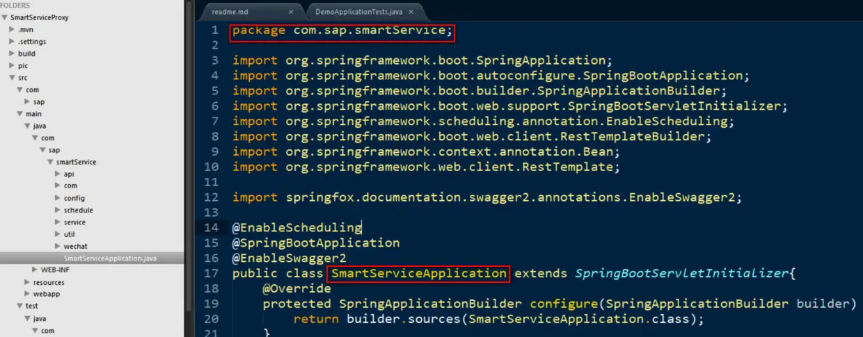 由于我这个SpringBoot项目的入口是com.sap.smartService.SmartServiceApplication, 因此我需要在单元测试启动类里指定这个入口类: @SpringBootTest(classes = com.sap.smartService.SmartServiceApplication.class)
