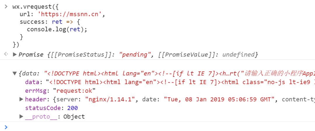 (注意:是 vrequest,比官方的 wx.request 方法名前多了个 v,也就是 wx.vrequest 哦!)