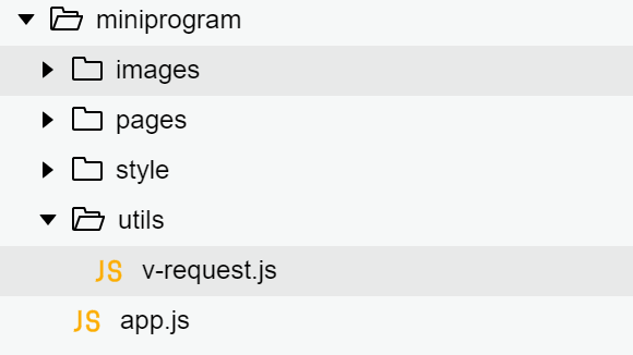 这步操作就更简单了,直接把项目里的 v-request.js 文件,复制到你的小程序目录中!我这里放在 utils/ 目录下: