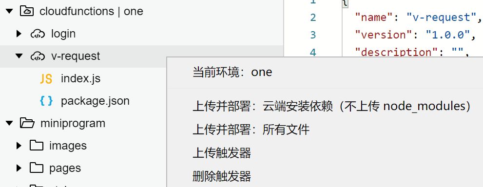 最后!右键我们新建的云函数,上传部署(云端安装依赖)!