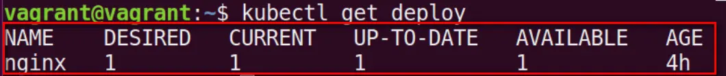 用kubectl get deploy查看成功生成的名为nginx的deployment: