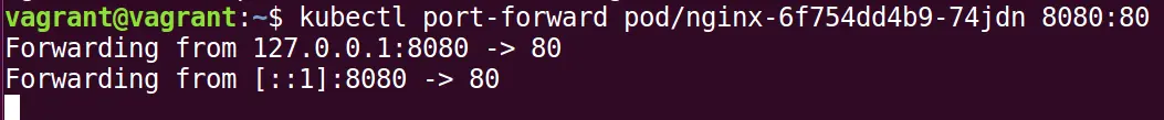 执行命令行 kubectl port-forward pod/nginx-6f754dd4b9-74jdn 8080:80