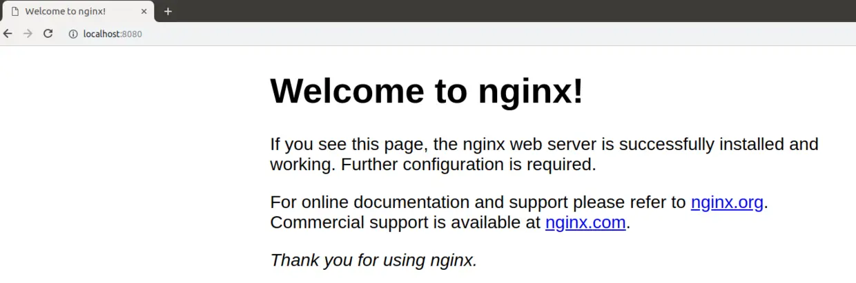 最后,就能够通过localhost:8080直接访问nginx pod提供的服务了: