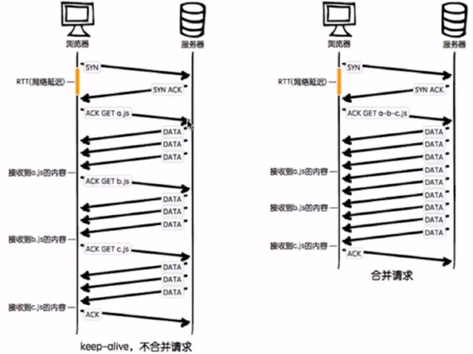 合并请求是指将多个请求合并成一个请求,下图可直观看出多个请求的缺点