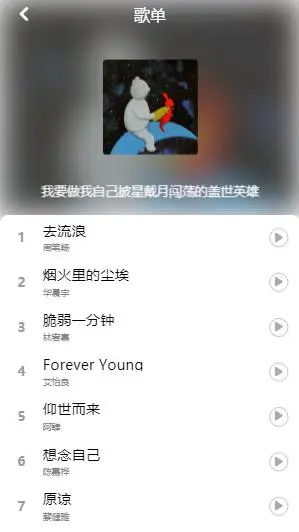1 发现歌单背景高斯模糊效果,在小米自带浏览器下过度时很卡顿,所以去掉了改了下歌单样式。