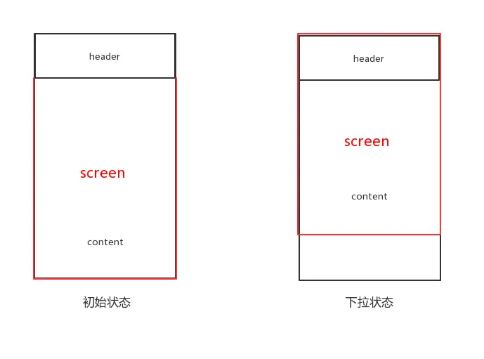再分析代码,首先_offsetY是下拉距离,是一个改变的量初始值为0,content需要设置top = _offsetY和bottom = -_offsetY,改变的是上下位置,高度不会改变;同理,header是采用top和height控制,高度固定,只需要动态改变top即可;