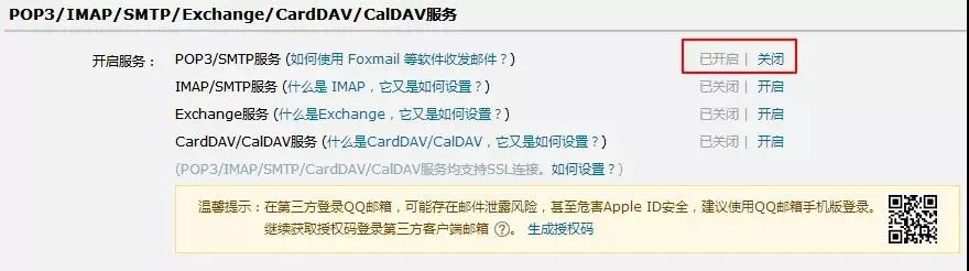 如果没开启则开启,根据提示开启之后我们需要获取授权码,这个授权码下面我们会要用到的,这一步只要获取到授权码就行了。