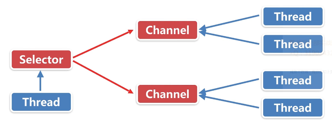Channel输出数据到Buffer,Channel他不一定对应到一个Buffer,他可以输出到多个不同的Buffer。 Channel从Buffer读取数据也是一样的,可以从多个不同的Buffer都把数据写给一个Channel。