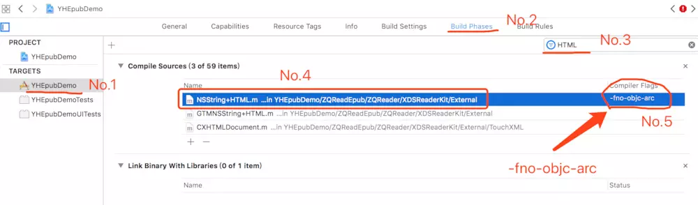 按照下图所示步骤,在所对应的类中添加"-fno-objc-arc"即可搞定